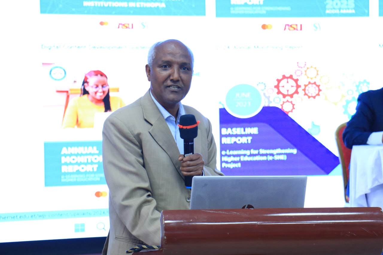 በኢትዮጵያ የከፍተኛ ትምህርት ተቋማት የኢ-ሼ (e-SHE) የሥርዓተ ጾታ ተወካይ ወ/ት ሃና ኩመራ በበኩላቸው ሀገራዊ የዲጂታል ትምህርትን በማስመልከት እንደገለጹት፣ የተቋሙ ዋና ዓላማ የኢትዮጵያን የመማር ማስተማር ሂደት በዲጂታል ቴክኖሎጂ ማገዝ በመሆኑ፣ ከተለመደው የሰሌዳ እና በክፍል ውስጥ ከተገደበው የመማር ማስተማር ሂደት በመውጣት በዲጂታል ማስተማርና መማር፣ የትምህርት ይዘቶችን በሀገር ውስጥ ምሁራን በመቅረፅ ለተማሪዎች መስጠት እንዲቻል በርካታ ስራዎች እየተሰሩ መሆናቸውን ገልጸዋል፡፡