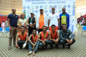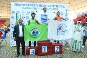 የሜዳሊያ ሽልማቱንም የኢትዮጵያ ዩኒቨርሲቲዎች ስፖርት ማኅበር ፕሬዘዳንት አቶ አባይ በላይሁን እና የጅማ ዩኒቨርሲቲ ፕሬዘዳንት ዶ/ር ጀማል አባፊጣ ለተማሪ ስፖርተኞቹ አበርክተዋል።