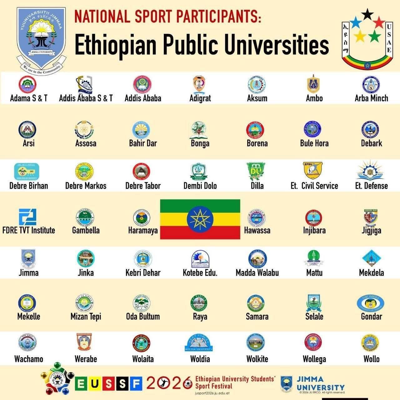 (ጅማ፣ ጥር 17 ቀን 2018 ዓ.ም) – 49 ዩኒቨርሲቲዎች የሚሳተፉበትና በጅማ ዩኒቨርሲቲ አዘጋጅነት የሚካሄደው የዘንድሮው የመንግሥት ዩኒቨርሲቲዎች የተማሪዎች የስፖርት ውድድርና ፌስቲቫል የመክፈቻ ሥነስርዓት ላይ የባህልና ስፖርት ሚንስትር ዴኤታ አቶ መኪዩ መሐመድ፣ የኢትዮጵያ ዩኒቨርሲቲዎች የስፖርት ማኅበር ፕሬዘዳንት አቶ አባይ በላይሁን፣ የኮተቤ የትምህርት ዩኒቨርሲቲ ፕሬዘዳንት ዶ/ር ተሾመ ነቃጥበብ እና የሌሎችም ዩኒቨርሲቲዎች ፕሬዘዳንቶች እንዲሁም ጥሪ የተደረገላቸው እንግዶች ተገኝተዋል።