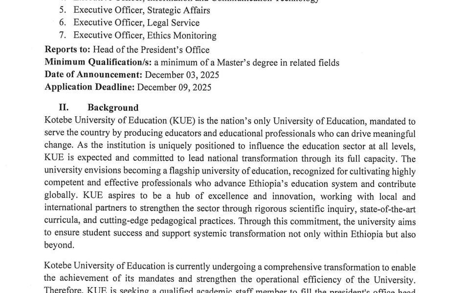 Read MoreKotebe University of Education Vacancy Announcement for Academic Leadership Position