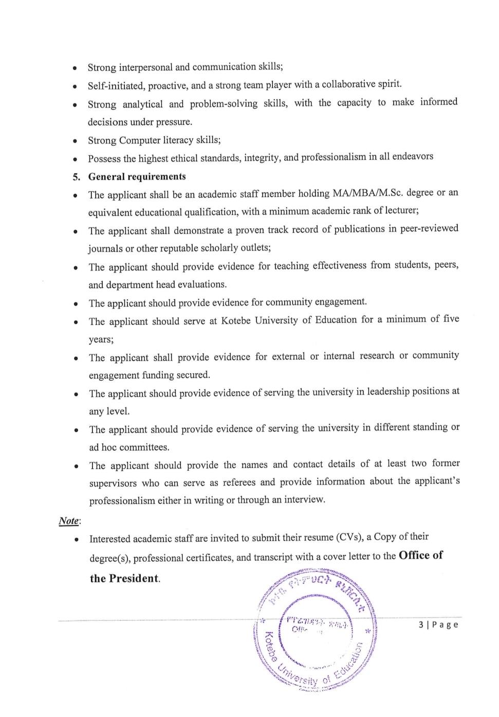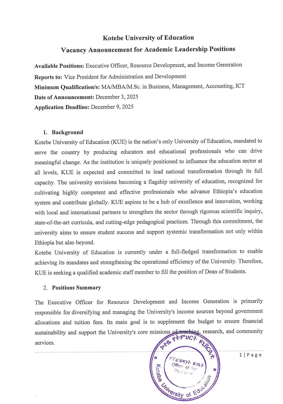 Kotebe University of Education Vacancy Announcement for Academic Leadership Position👇